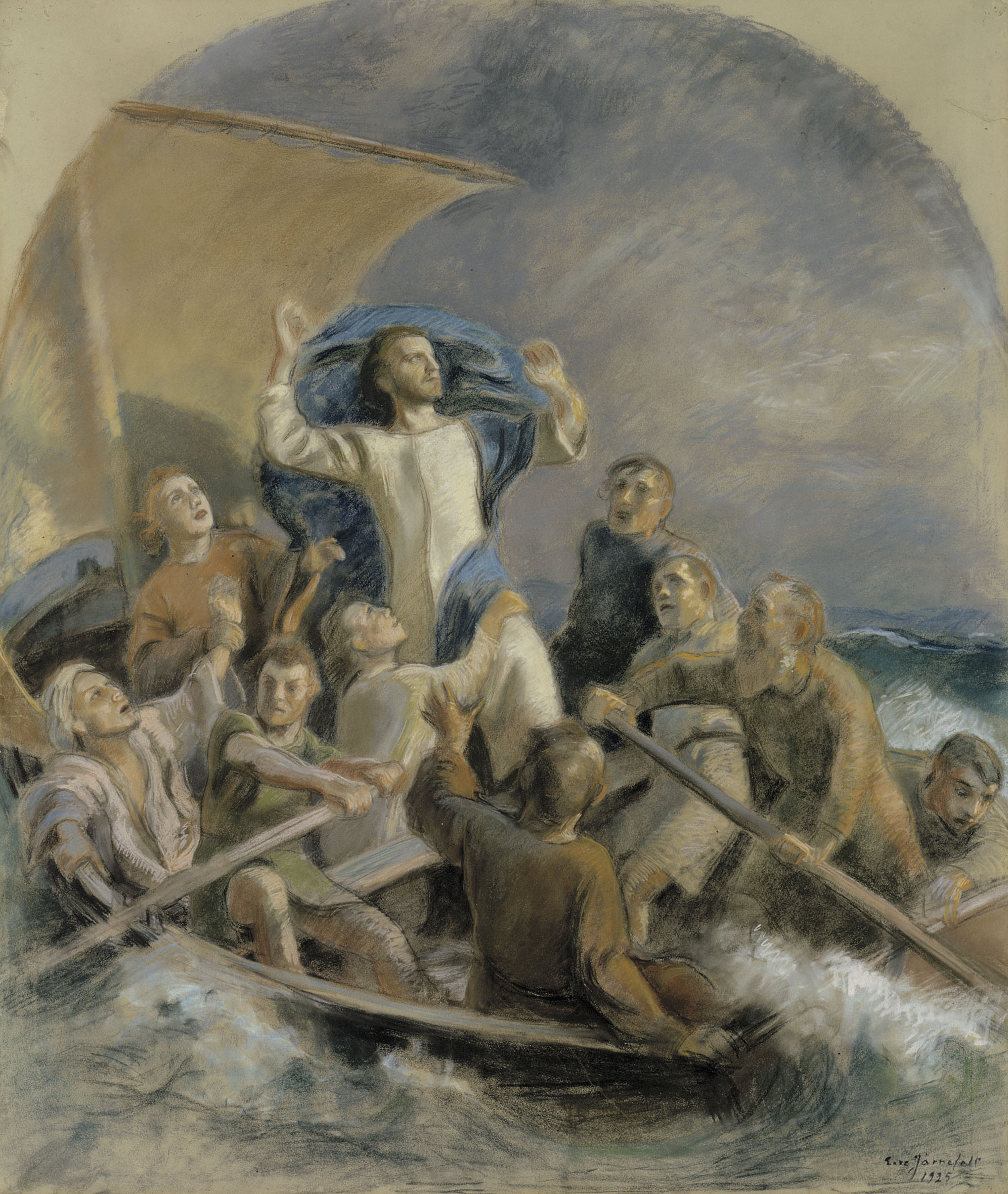 Tämä pastellityö on harjoitelma Raahen kirkon alttaritaulua varten.