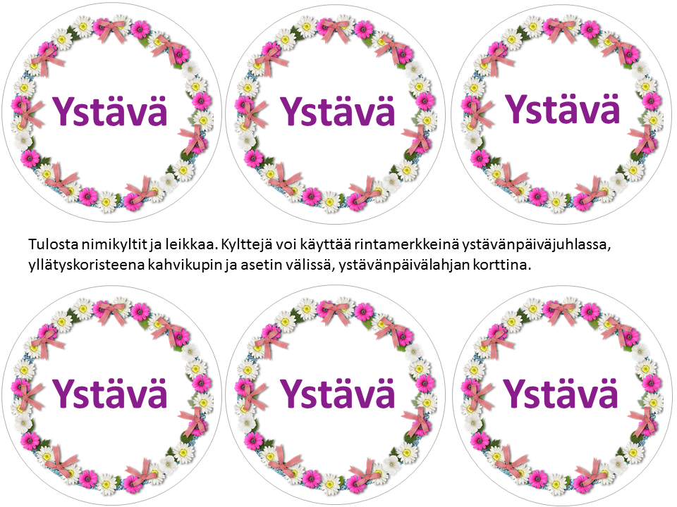 Pienet pyöreät kortitystävänpäivälahjoihin, rintamerkeiksi ym. (kuva oikealla)