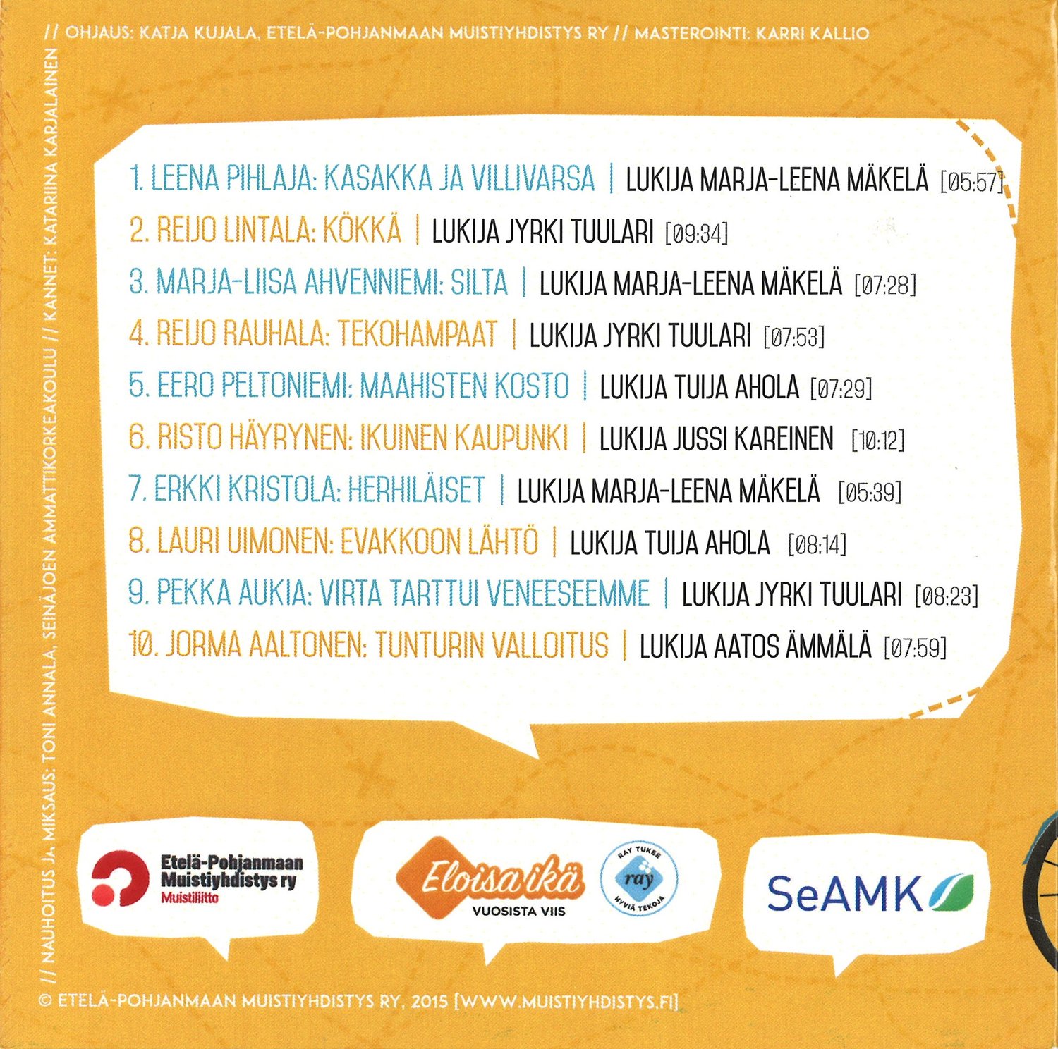 Etelä-Pohjanmaan Muistiyhdistys ry:n Kulttuurista muistoja-hankkeessa tuotettiin Elämän seikkailu ei ikää katso -äänikirja ja siihen Äänikirjaninnoitusopas. Innoitusoppaasta voi katsoa vinkkejä muidenkin kuunneltavien tarinoiden käsittelyyn.