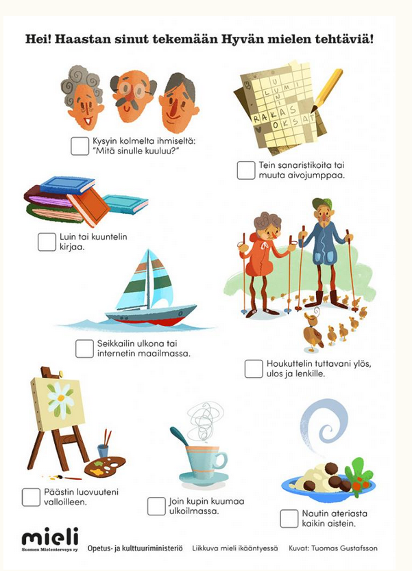 Vinkki Tulosta 15-sivuinen Koronakirje ja lähetä isomummolle ajankulua palvelutaloon. Sisältö sopii kaikenikäisille ja visailutehtävistä voi järjestää sukupolvien välisen kilpailun.
